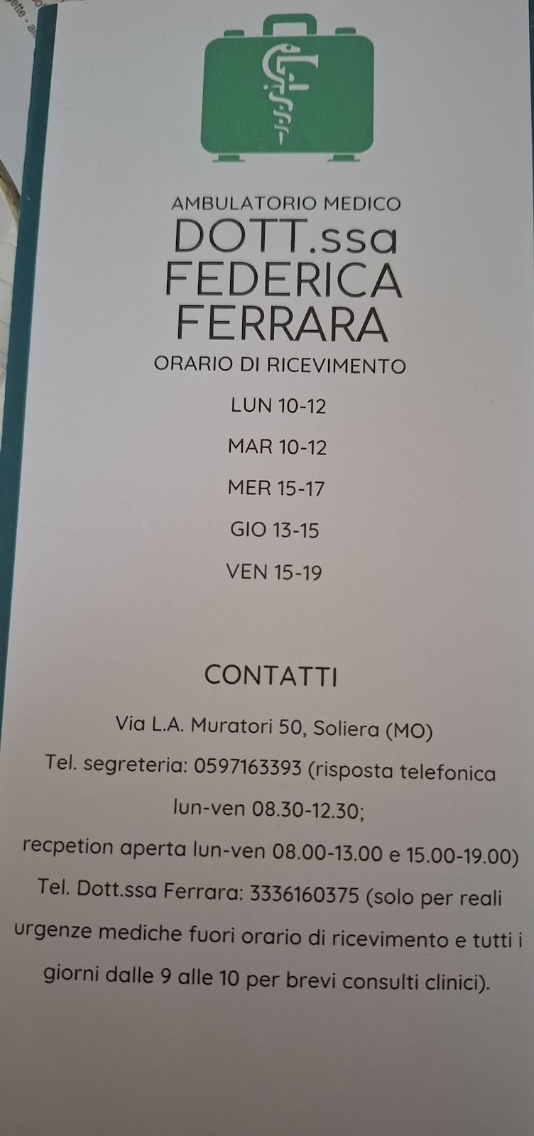 Medico a Ferrara Indirizzo: Via L. A. Muratori, 50, 41019 Soliera MO, Italia Rating: 5/5 ***** (2 recensioni) Telefono: 059 716 3393