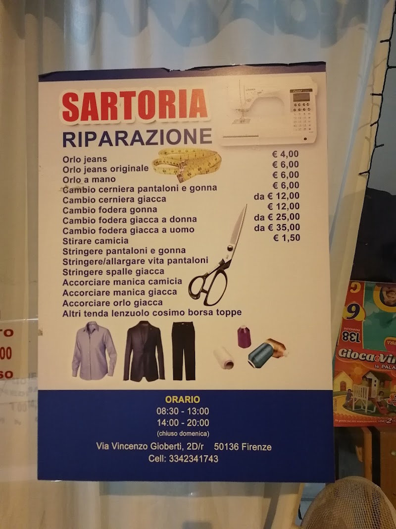Sarto a Firenze Indirizzo: Via Vincenzo Gioberti, 2/D, 50136 Firenze FI, Italia Valutazione Google: 4.2/5 **** (12 recensioni) Telefono: 334 234 1743